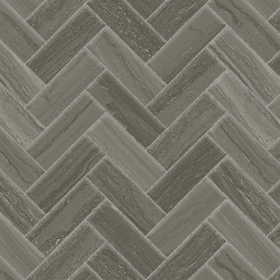 Highland 1"x4" porcelain herringbone mosaic in Dark Greige