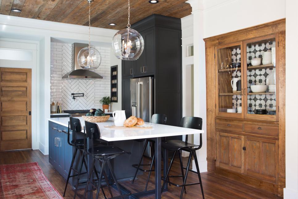 To add interest to a built-in hutch, Joanna Gaines of Magnolia, restored the wood and added in our Enchante Moderno porcelain tile for a distinctive and unexpected touch.