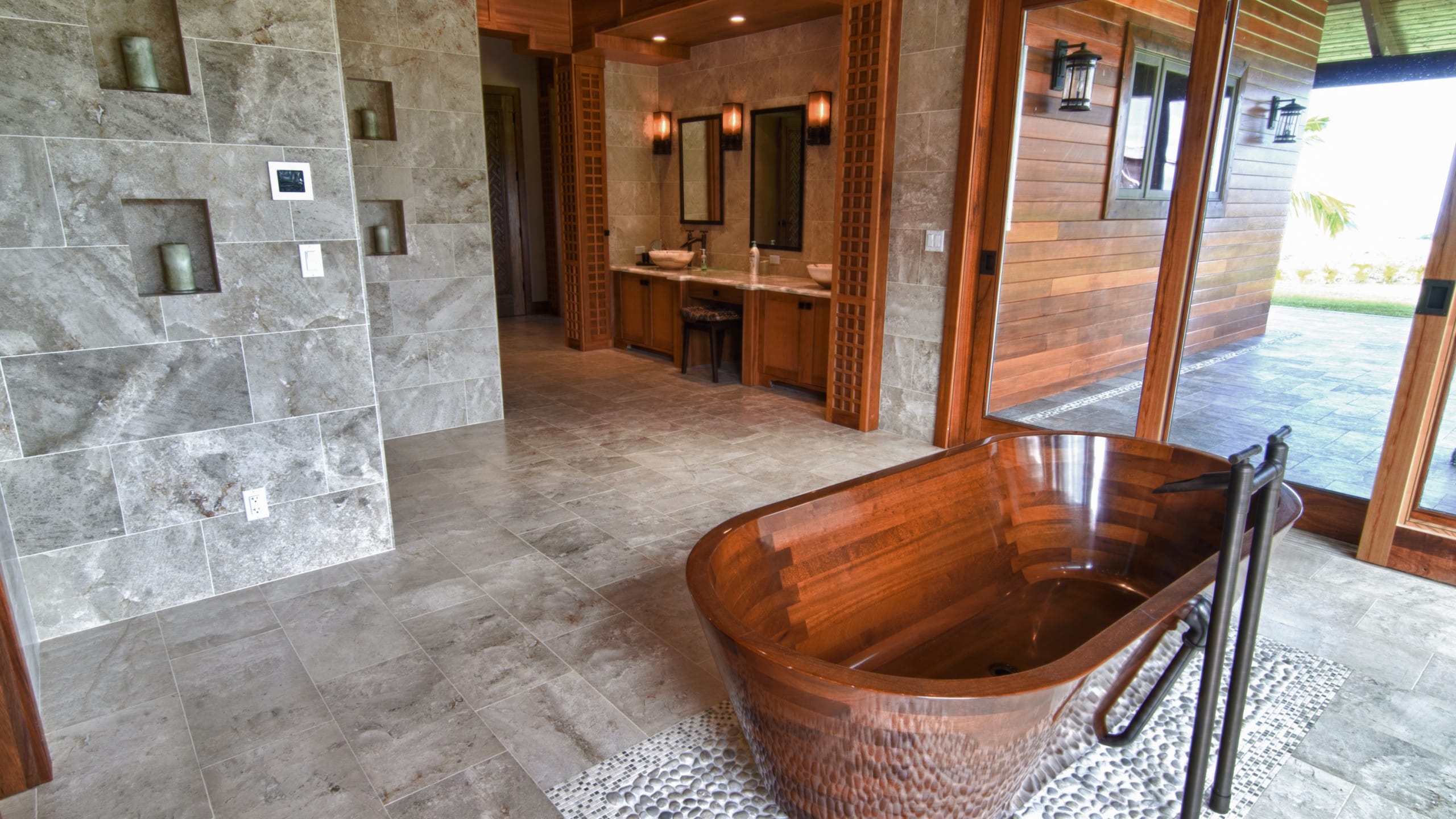 Walls and floor: Silver Mist 12"x24" travertine tile