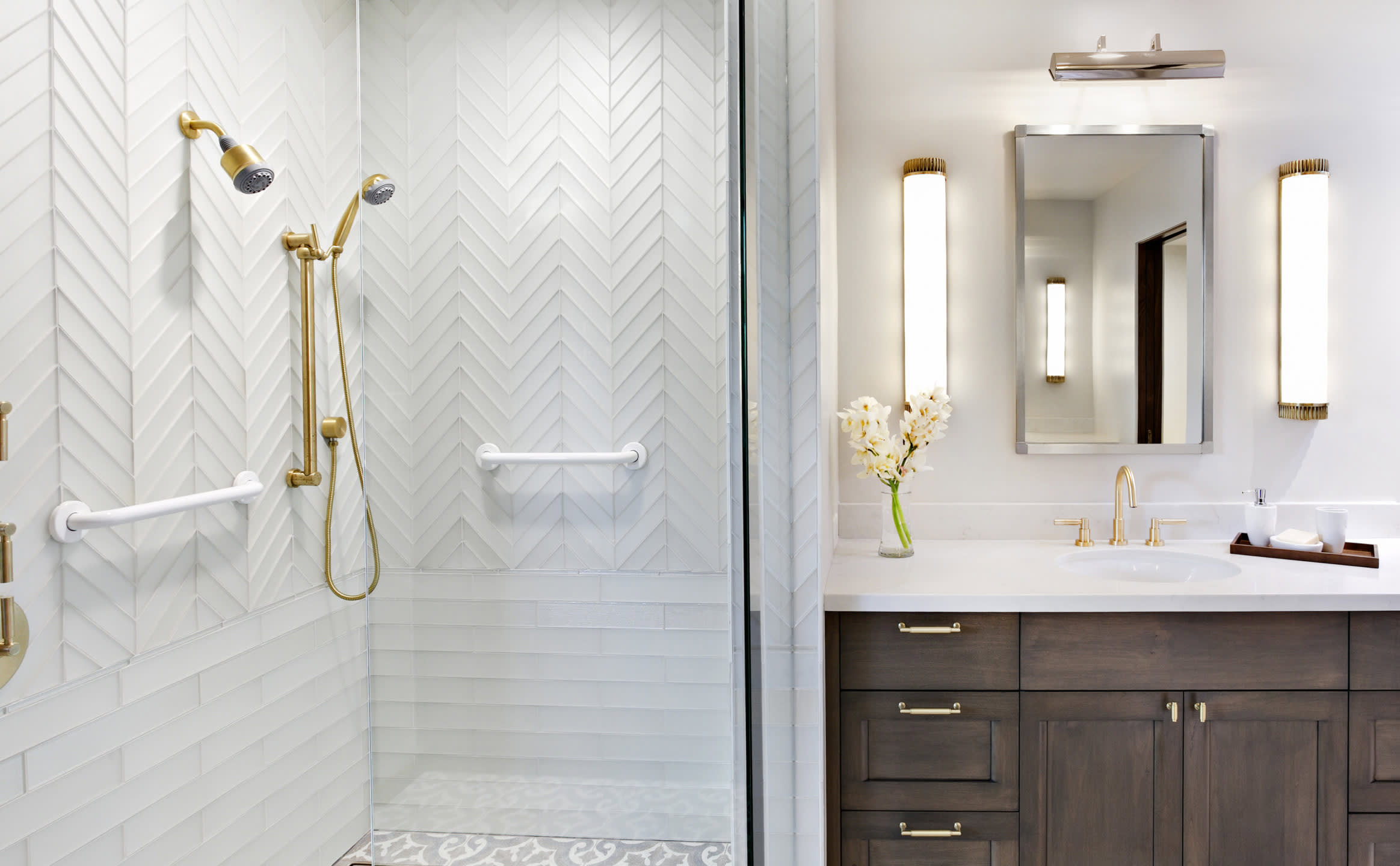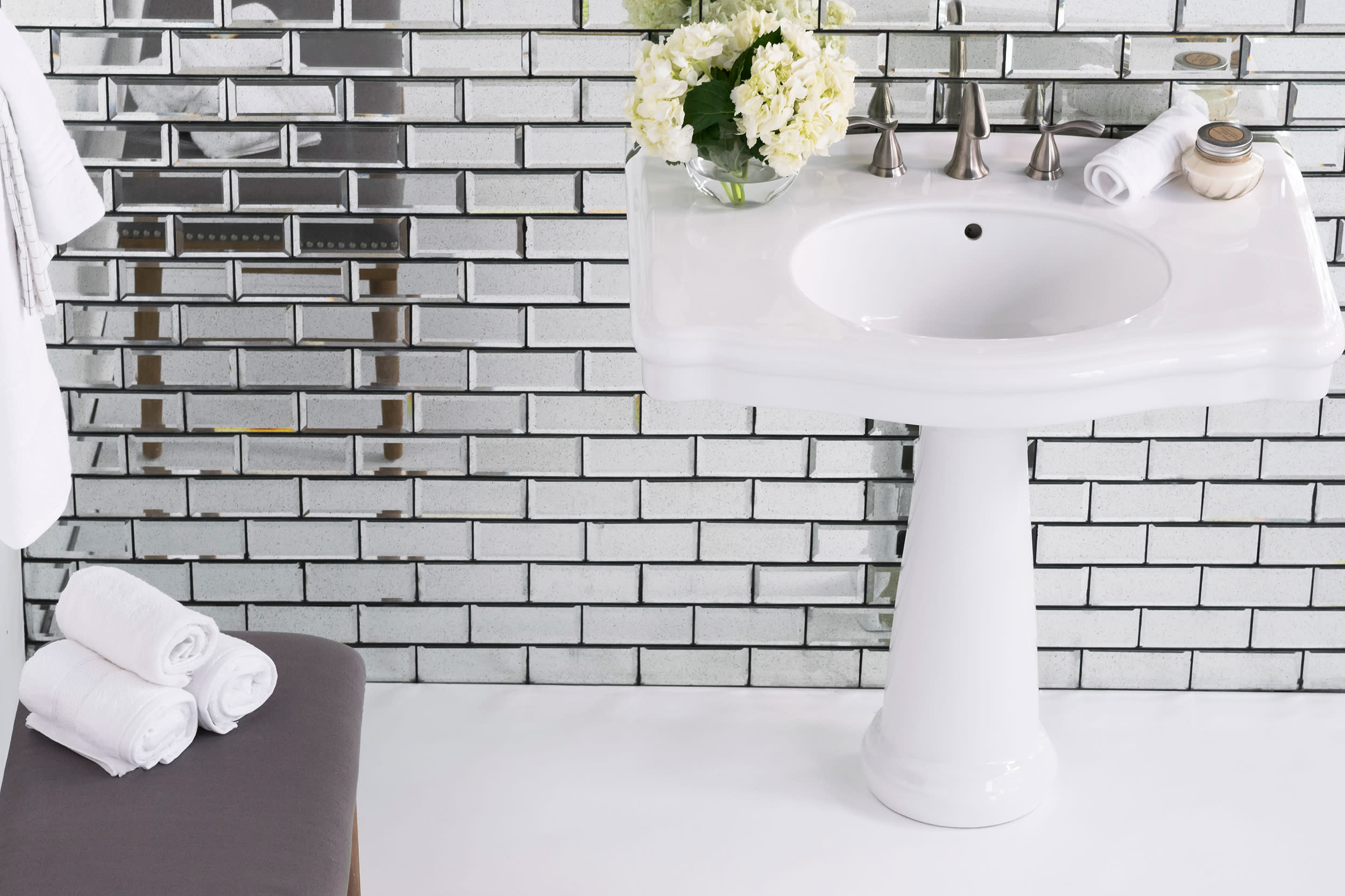 A master bath, be it large or small, is a place for peace and solitude. Whether you add a cascading wall of marble, sparkling glass tile and mosaics, or classic and clean white tile, these spaces are designed to be secluded retreats from the rest of the world. Read on to discover stunning master baths you can create in your own home using tile and stone from Bedrosians.