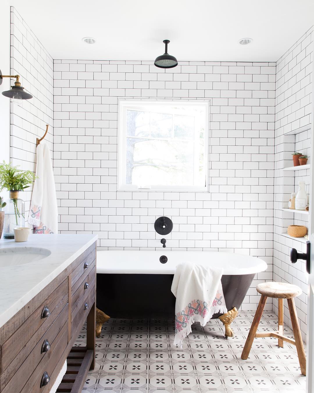 Rustic Charm - You don't have to live in a country cabin to enjoy the warmth and coziness of a rustic bathroom. Bring in natural stone and wood-look porcelain or add fixtures and decor that reflect a less formal feel.
