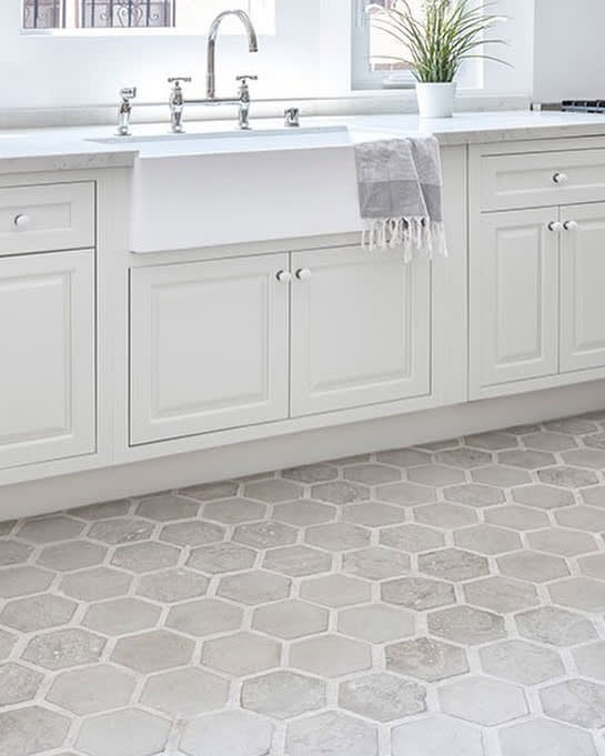The bigger, the better is the motto for large scale hexagon tiles. They allow you to be bold and emphasize the shape in large sizes like 8" or even 13". You can really zoom in on the detail and make a big statement.