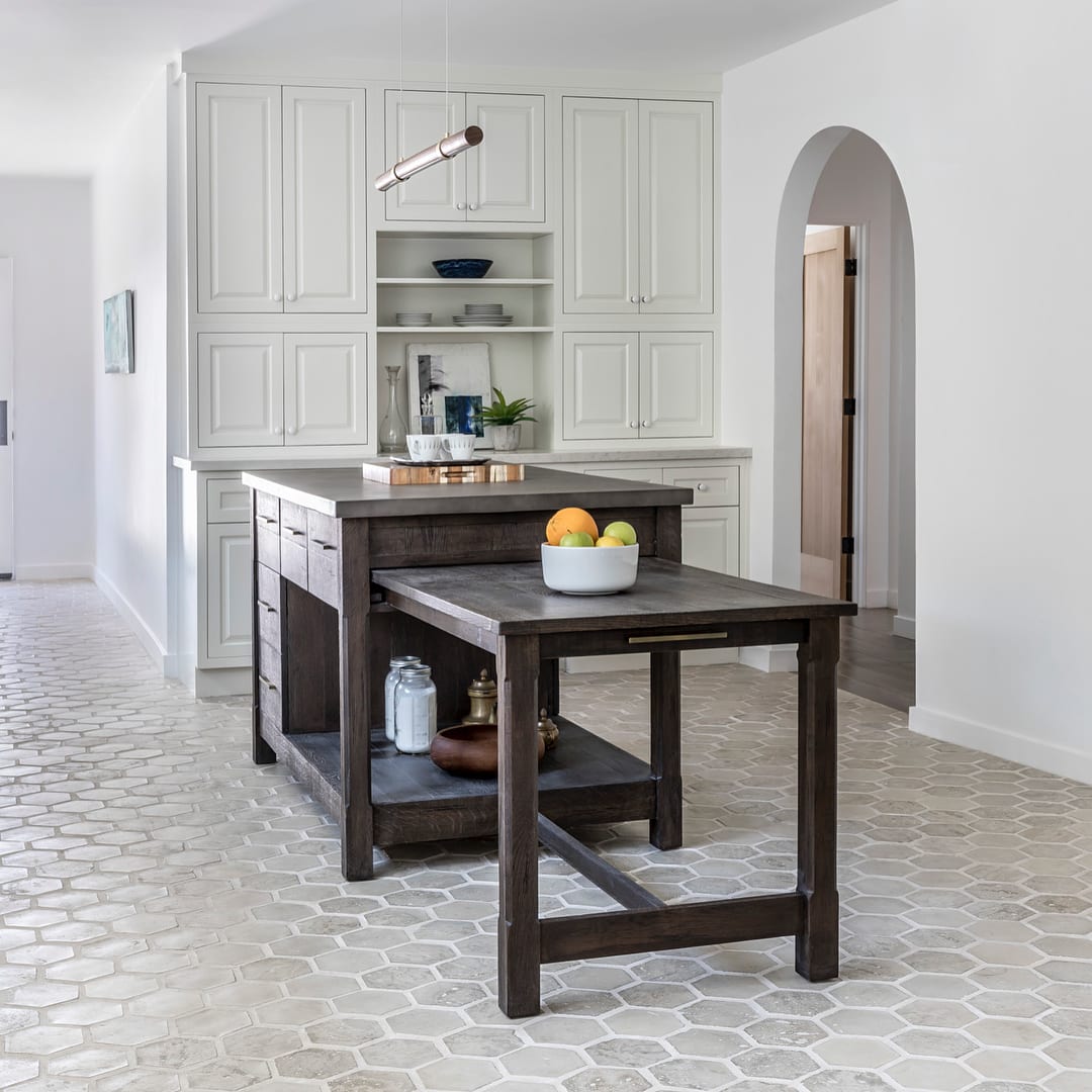 Try using cement brick tiles in the hexagon shape to evoke a rustic and gritty edge to your space. Our Avondale Collection, a thin-profile cement tile, can look contemporary or traditional depending on the colors and decor you choose to pair with it.