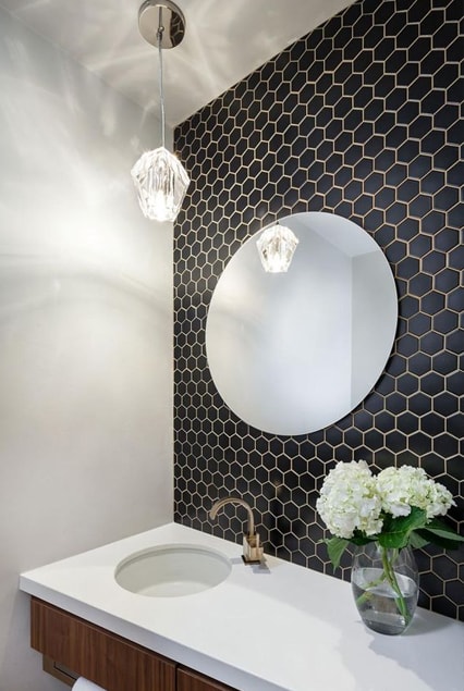 The hexagon is sometimes considered nature's perfect shape as it organically occurs in beehives, flowers and snowflakes. The honeycomb pattern lends fits perfectly into interior design, as it adds fresh geometric angles to any surface in any room. From little to large sizes to options in porcelain, glass or stone, the hexagon can be used in classic and unexpected designs.