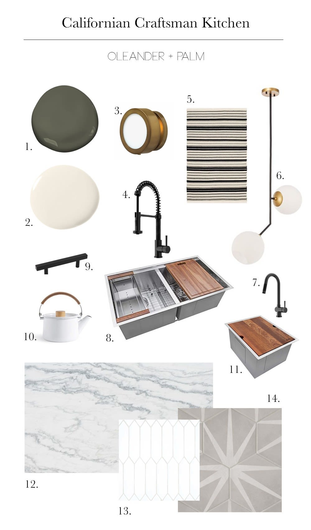 Californian Craftsman Kitchen - mix of warm and cool surfaces, hardware and accessories