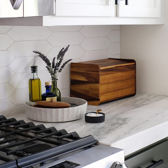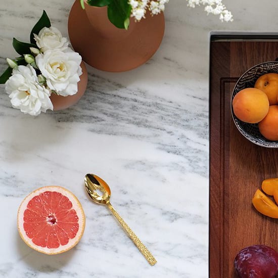 "I teamed up with Bedrosians Tile & Stone on this room makeover and they have been a dream to work with. The team in Bakersfield is the best! I couldn’t have found a better floor, countertop or backsplash anywhere. They have so many options, but I think I went with the best! This honed marble is pretty much the prettiest thing I’ve ever owned. I’ve been wiping it down and polishing it over and over." - Jeran said.