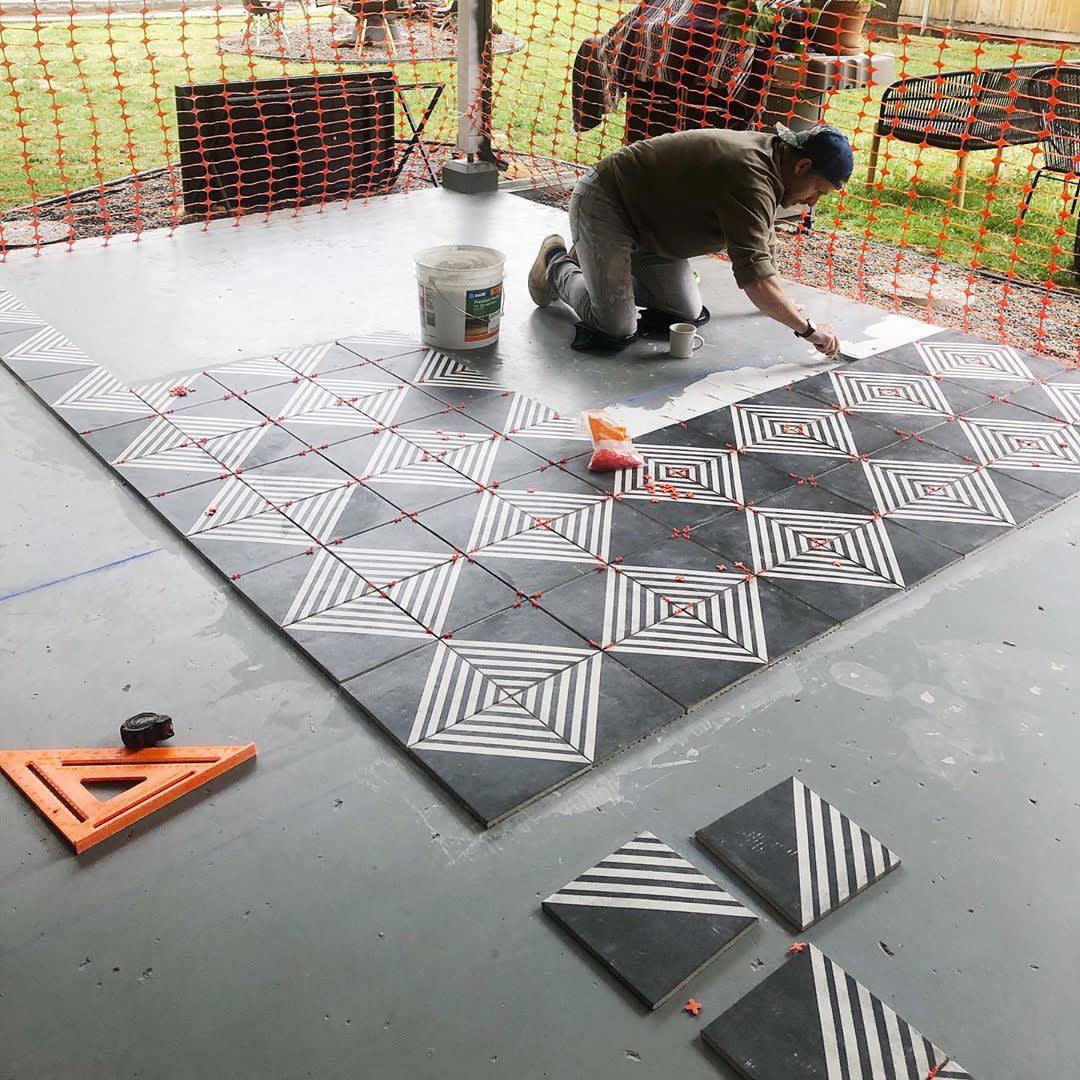Grove's husband set the tile on the patio