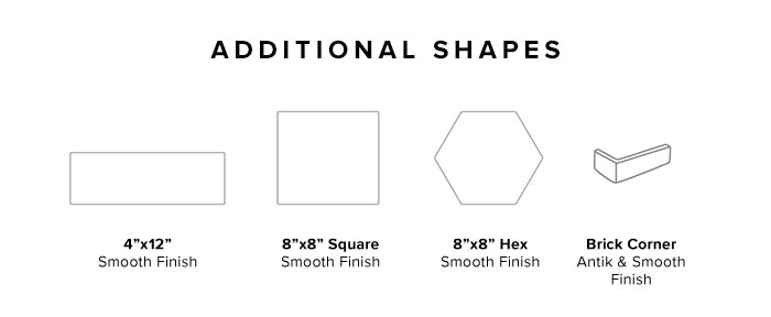Reminiscent of indigenous bricks from around the world, our special order Avondale Collection is a simple and rustic thin-brick tile that will add style and charm to your project. Offered in four design-enhancing colors, Early Grey, Sidewalk, Normandy Cream and Used Red, and several shapes, the versatile Avondale is available in a two finishes, Antik Brick and Smooth Brick. Antik is 2”x8” and Smooth is 4”x8”. Early Grey, Normandy Cream and Sidewalk also comes in Smooth Brick in three sizes: 4”x12”, 8”x8” square and 8” hexagon. Corner pieces are available in all finishes and colors. This collection is also made in the United States.
