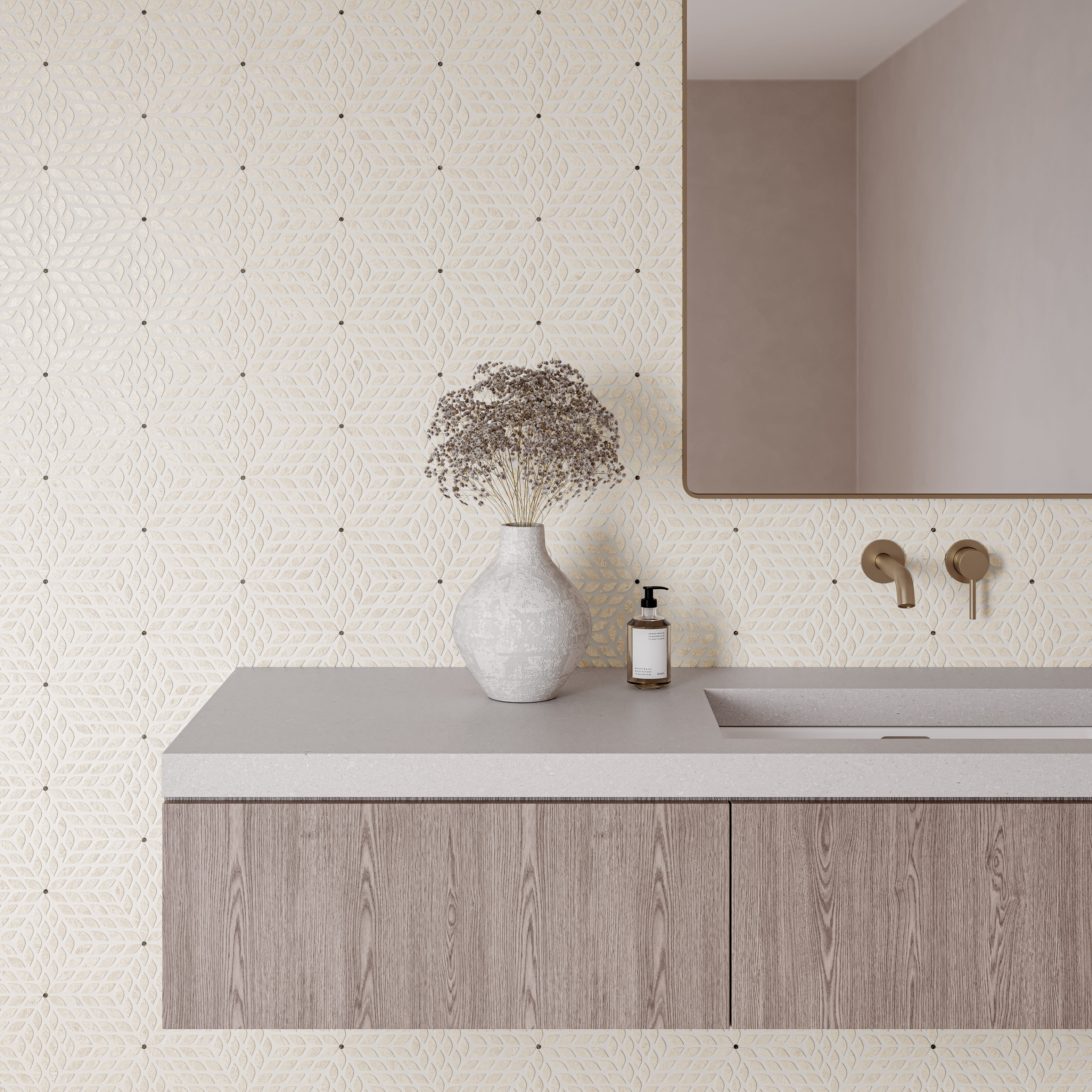 Celeste BathroomCeleste Honed Marble Blend Mosaic Tile in Myra Beige & Basalt