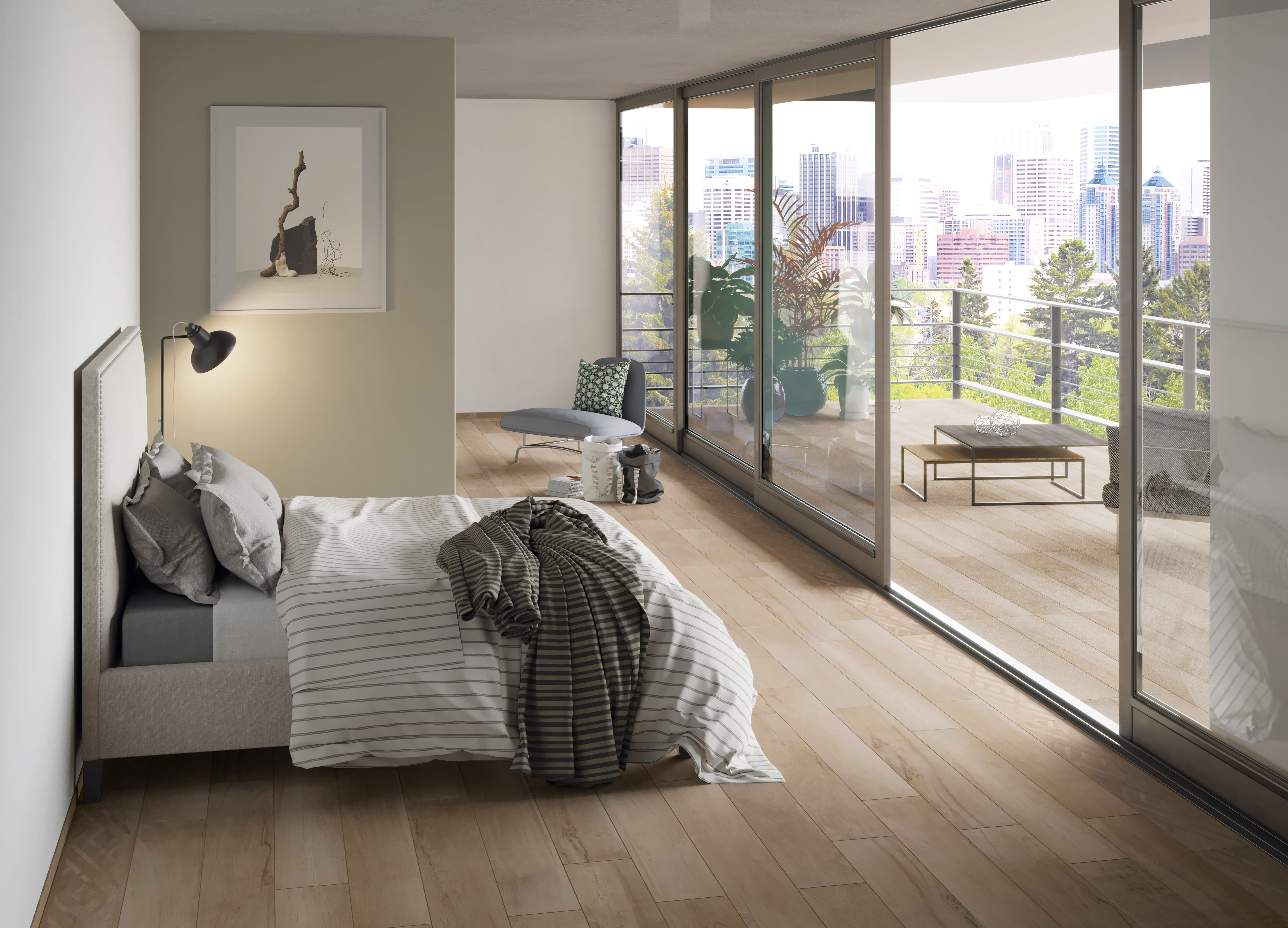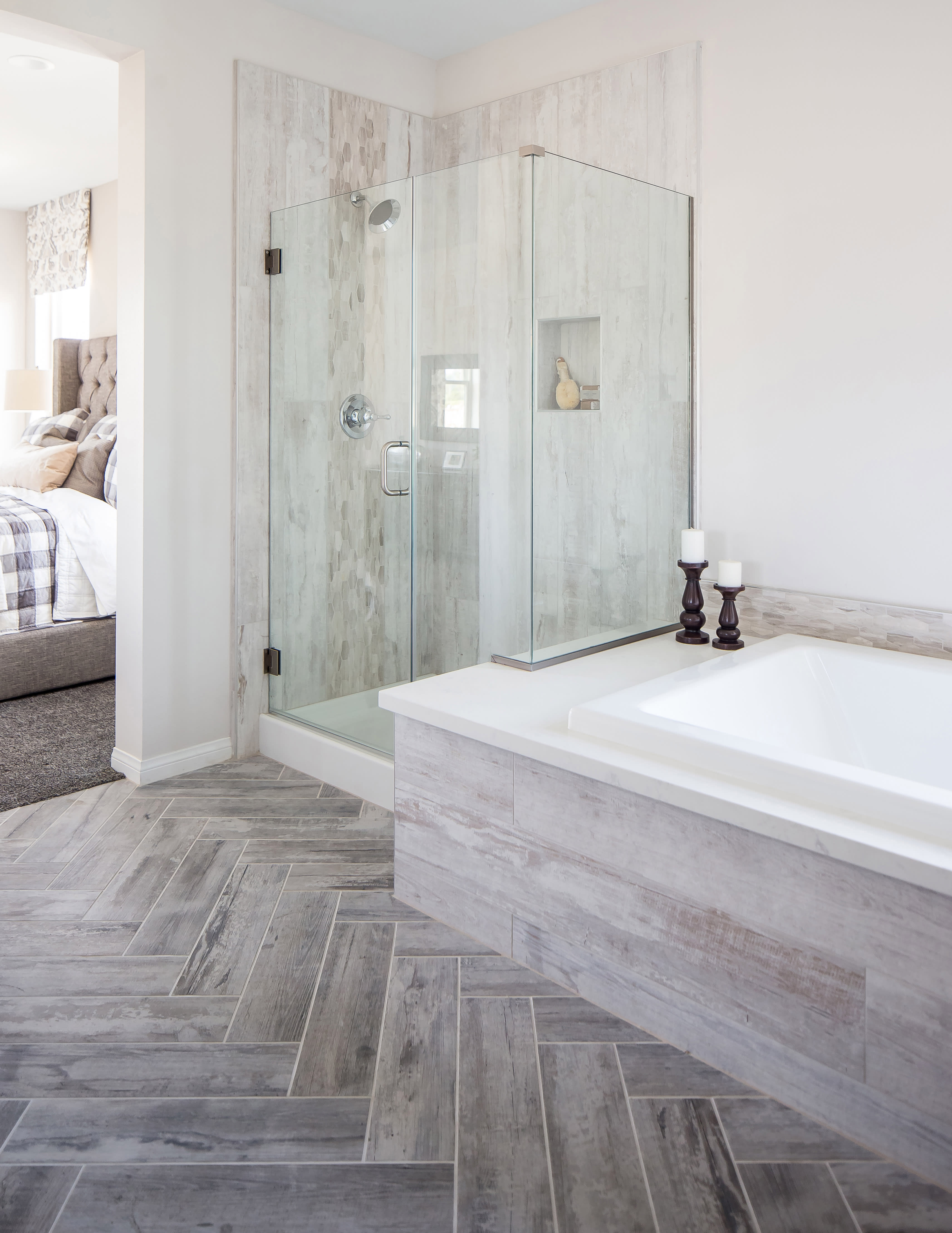 Love the look of real wood floors, but worry your room isn't appropriate for the material? One of the best alternatives is wood-look porcelain tile, as it can be used in any climate and any room, even water-prone areas like bathrooms, showers, laundry rooms and kitchens. Drawing inspiration from their real wood counterparts, wood-inspired porcelain tiles offer the natural beauty of hardwood, but with the enduring qualities of porcelain tile. Through advancements in digital imaging and high-tech manufacturing processes, this tile option replicates realistic textures and shading variations that make it nearly indistinguishable from real wood.