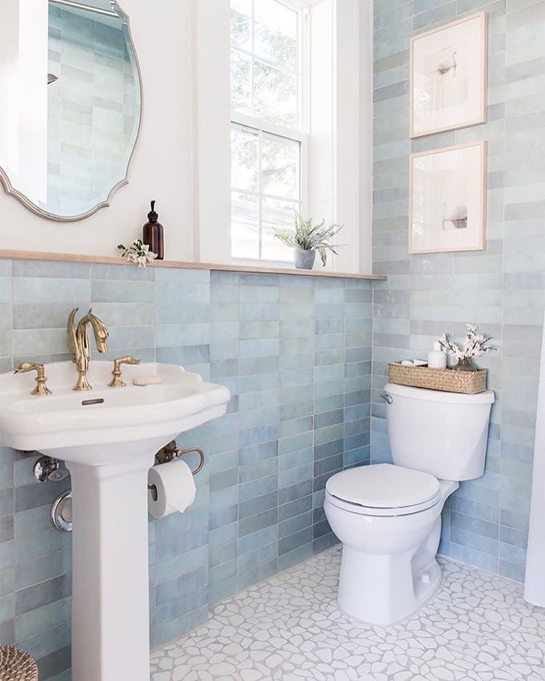Baby Blue Cloe for the win in this bathroom designed by @jennasuedesign! We love seeing this powdery blue tile installed.