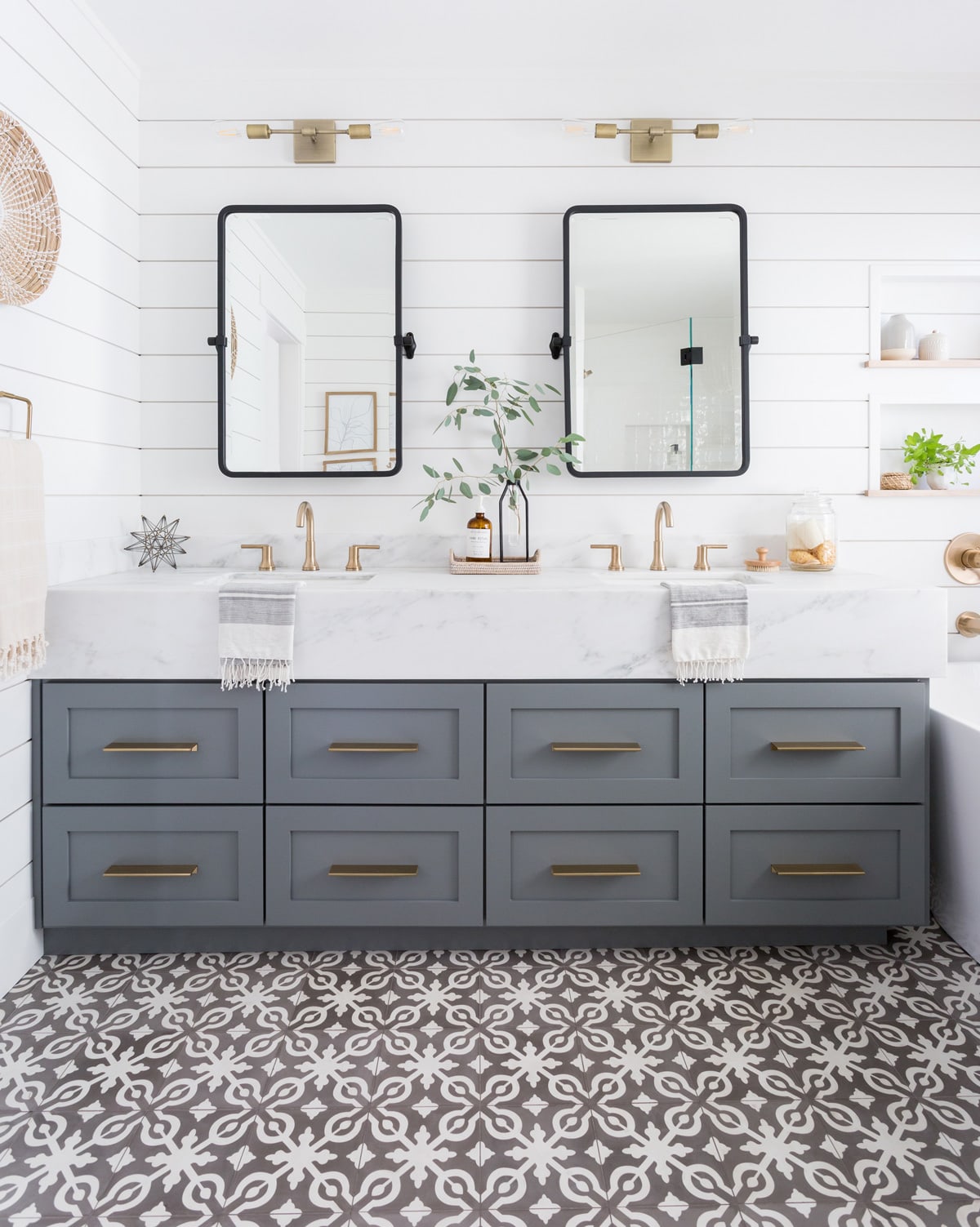 When you see a bathroom that makes you want to scream with excitement!! Look how @eyeforpretty designed this space using our Remy Cement tile in color Soffia to transform this bathroom. 📷 @amybartlam. Remy, a hand-made cement tile also known as Encaustic tile, breathes new life into an old-world design.