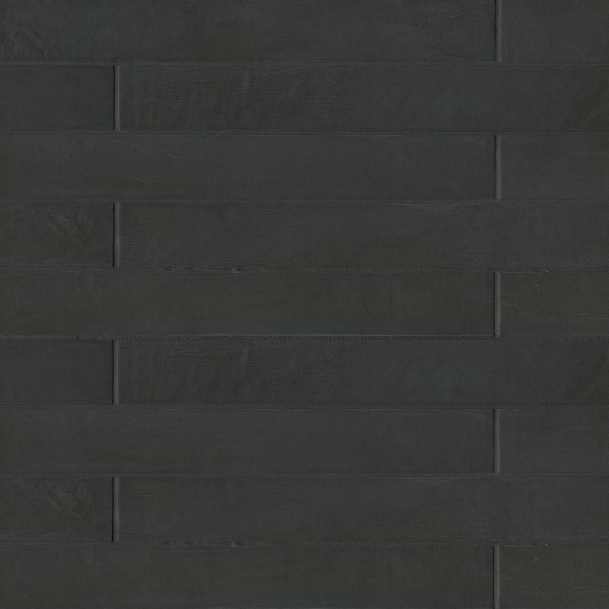 Accent Wall: Allora Rhombus in Black Floor: Allora 3"x24" in Grey