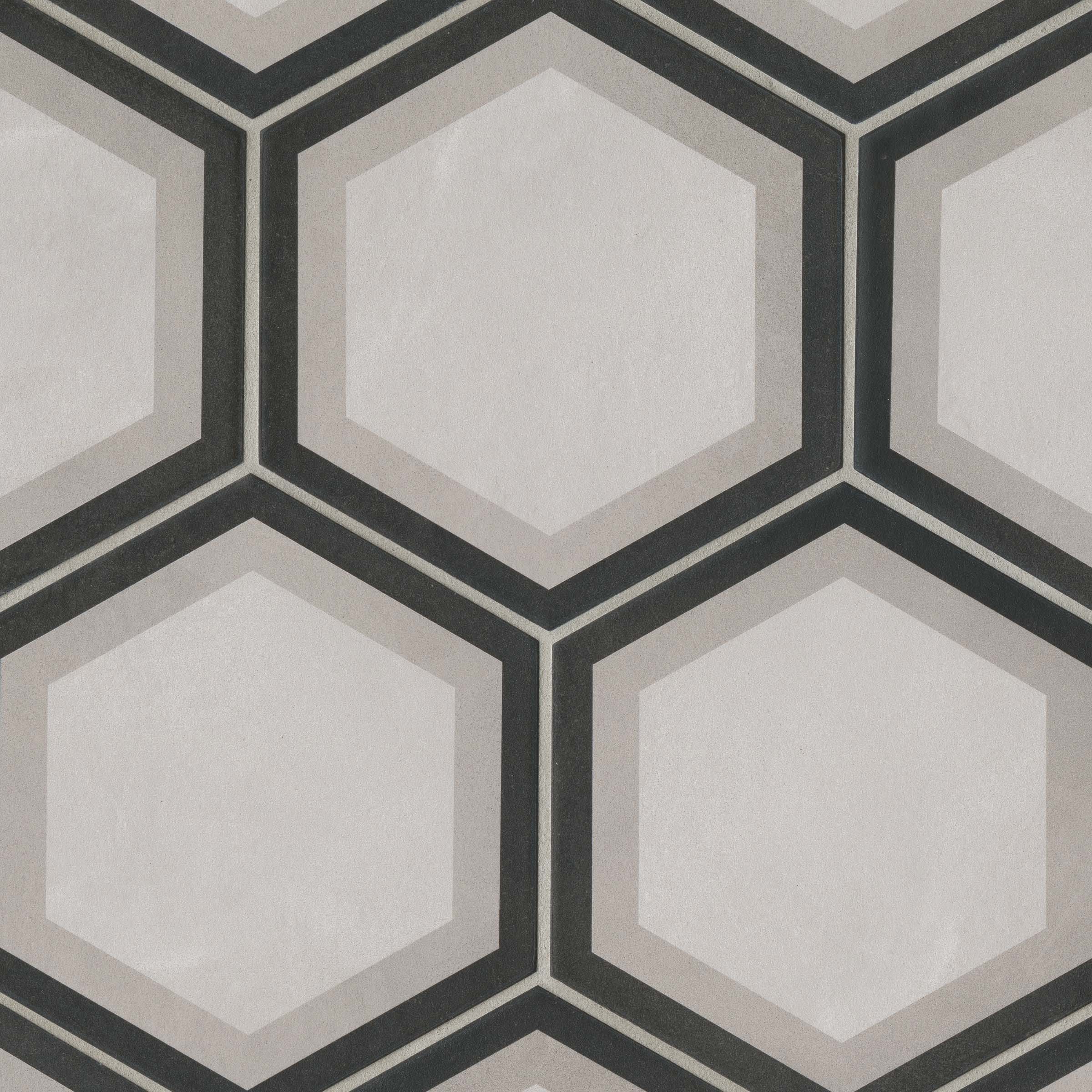 Telaio, meaning frame in Italian, is a perfect name for the last deco. The Telaio pattern is a white tile outlined in grey and then black hexagons.
