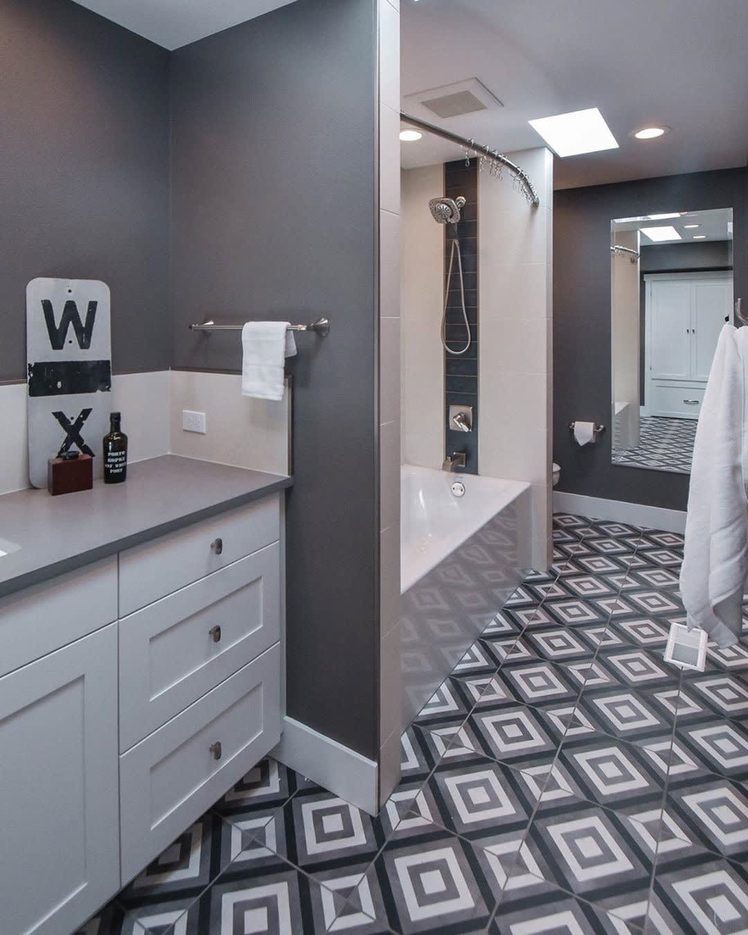 Floor: Chateau porcelain 12"x12" Diamond Deco | Source: American Dream Design Build