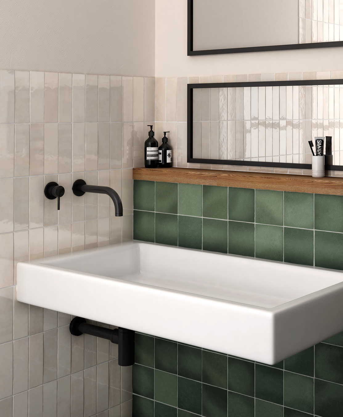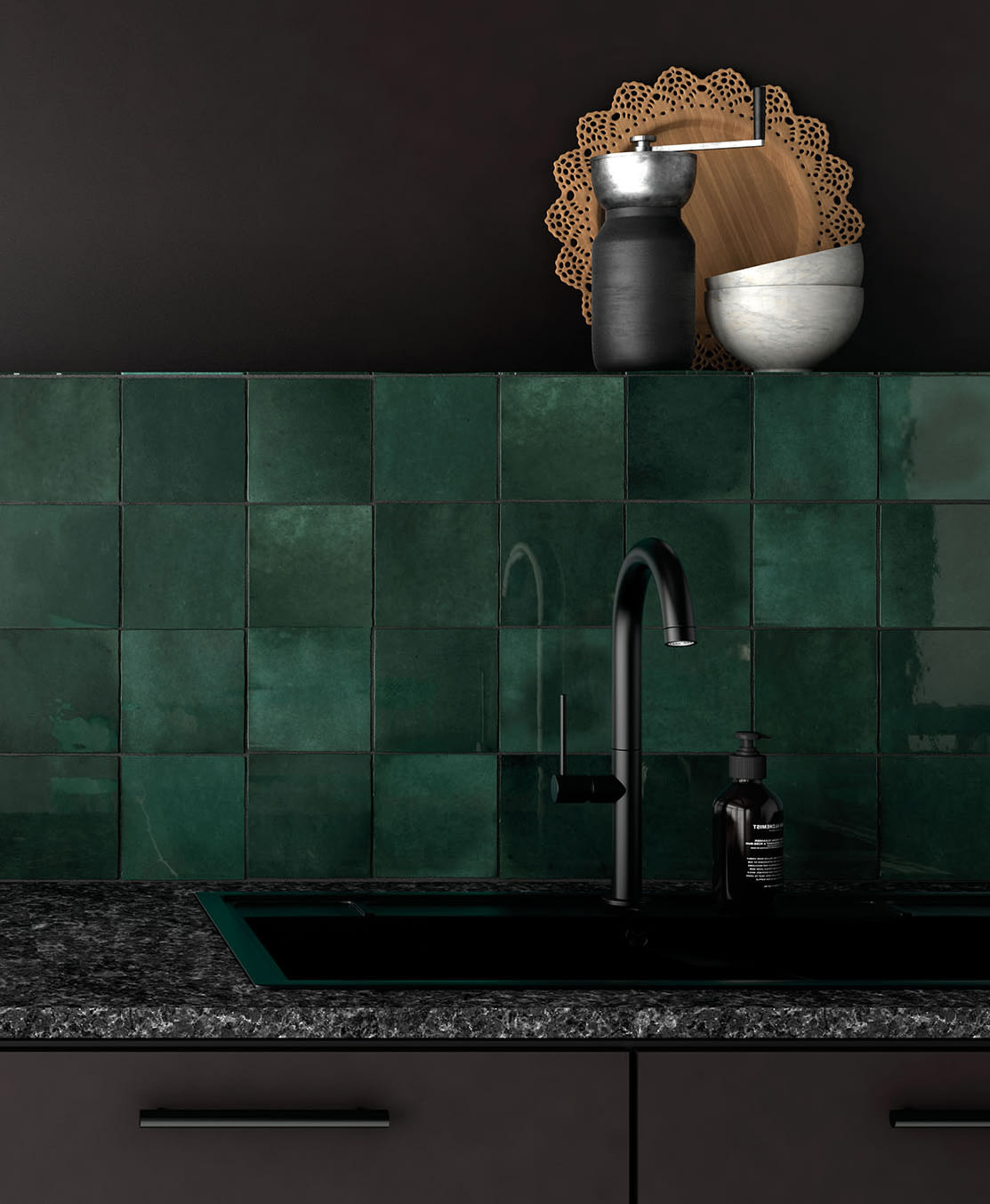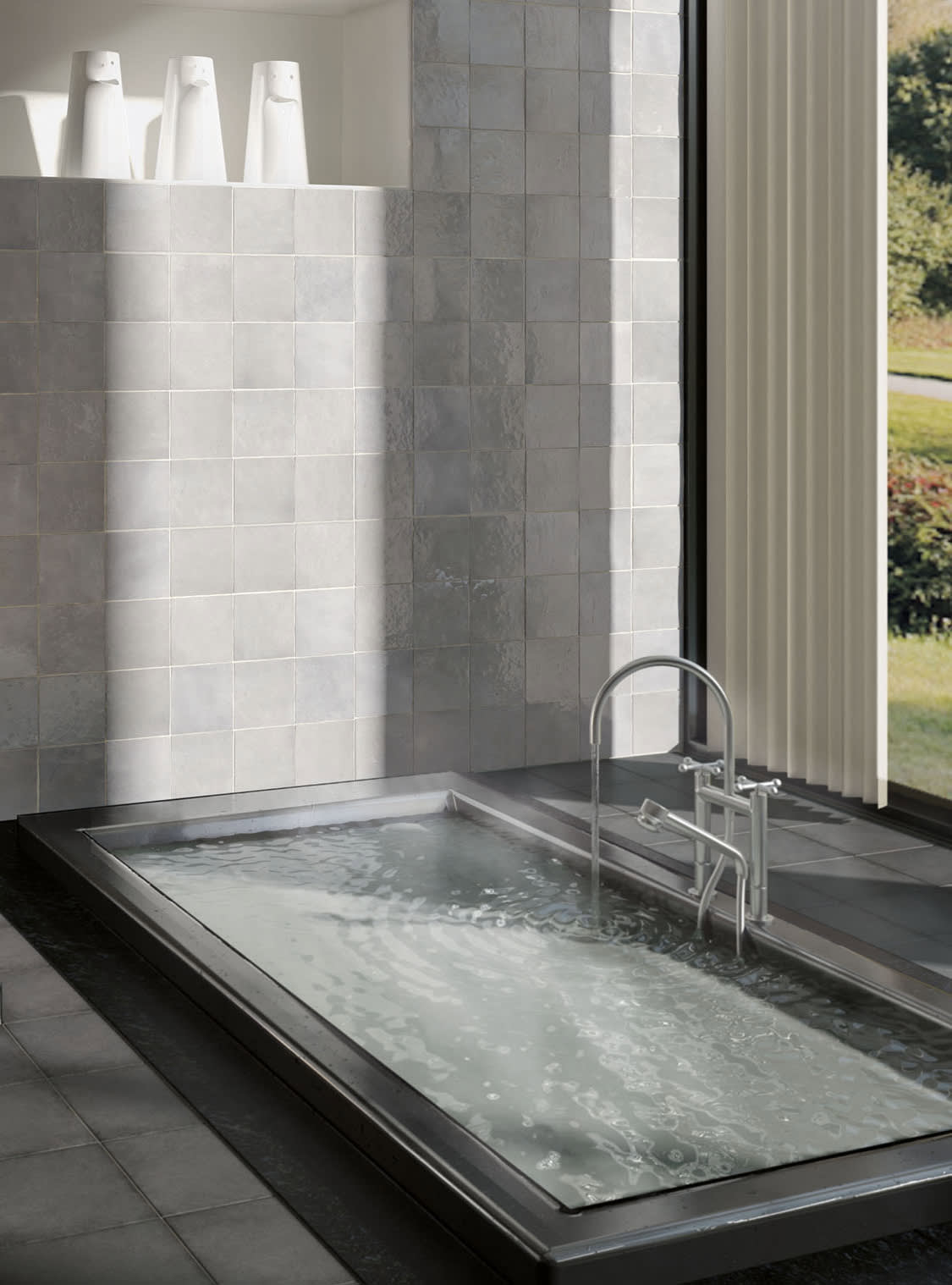 To add versatility, we offer a square 5”x5” black and white patterned deco called Loire that complements all colors in the collection. The graphic pattern of Loire, comprised of hexagons, squares and rectangles, is reminiscent of the Art Deco era and adds a special design element to the collection.