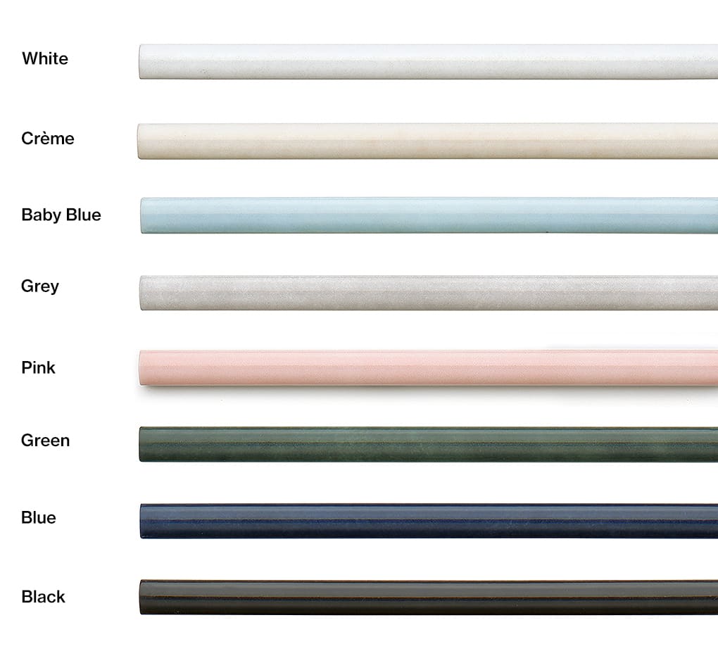 Finally, to help complete the look, the Cloe collection includes a ½” x 8” Jolly Miter Edge Trim piece in gloss finish for all 8 colors.