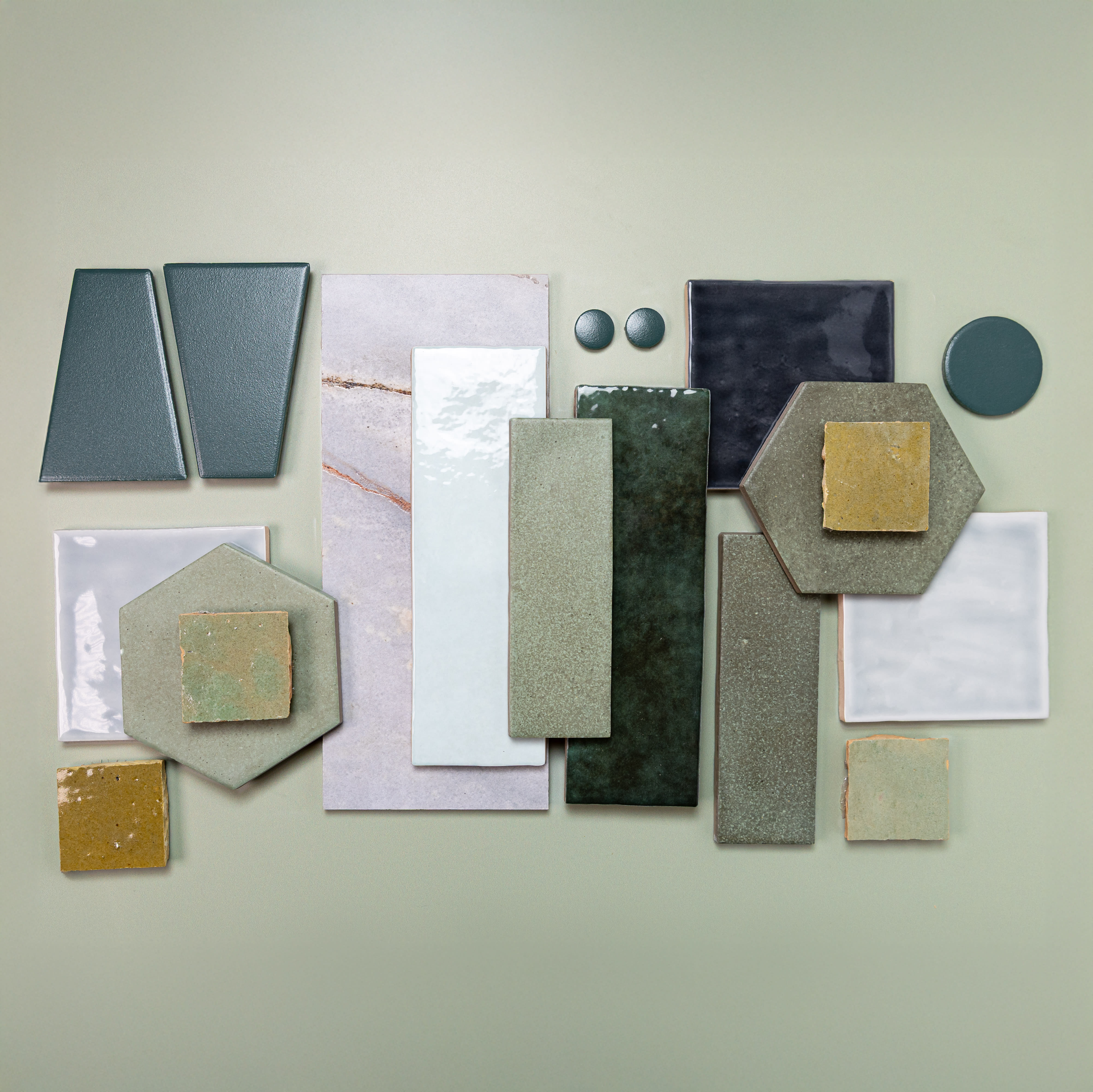 Green Tiles: Fresh green hues, such as mint, olive, and forest green, offer a natural vibe that pairs wonderfully with earthy wood tones and neutral palettes. These colors bring a touch of nature indoors, making them perfect for creating a spa-like bathroom or a peaceful retreat in your living room.
