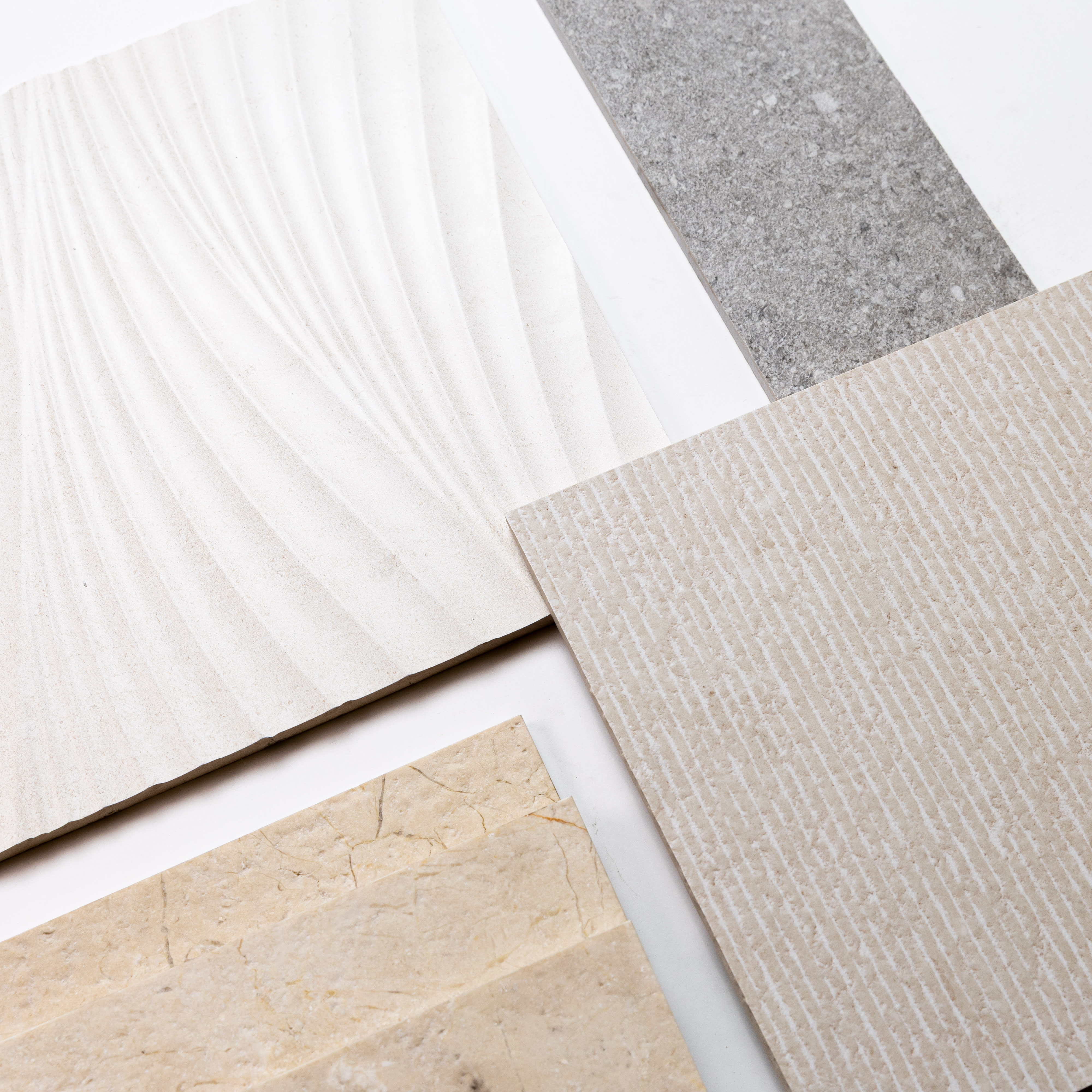 Textured Tiles: These tiles create shadows and highlights that shift with the light, making them perfect for accent walls, backsplashes, or even fireplace surrounds. The subtle texture adds an artistic, sculptural element to your space.
