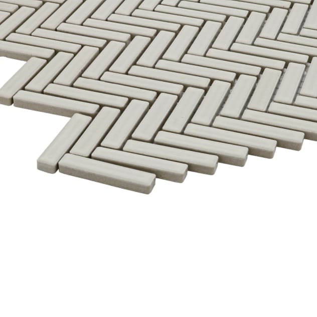 90 1/2" x 2" Herringbone Porcelain Mosaic Tile in Off White