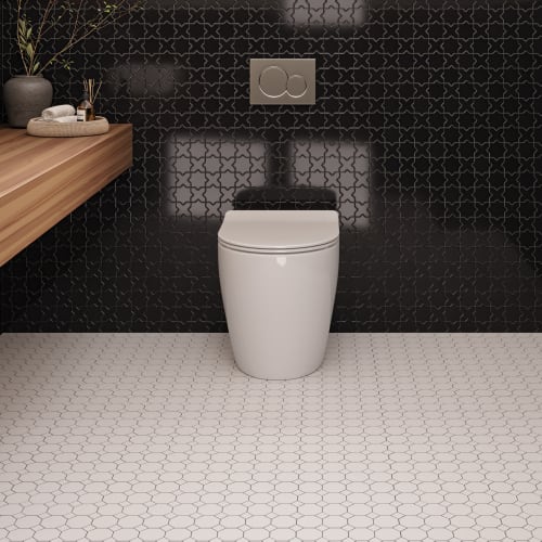 Le Cafe 2" x 2" Cross & Star Glossy Porcelain Mosaic Tile in Black