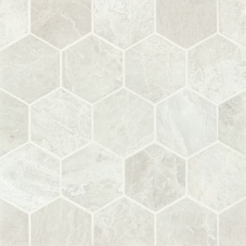 Caspian Bisque 3" Honed Marble Mesh Back Hexagon Mosaic