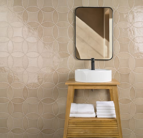 A collection of extruded porcelain tiles with a glossy finish, designed exclusively for interiors. Its wide range of colors makes it adaptable to any decorative style, offering versatility for both wall and floor applications. The available formats, PETAL (8" x 3") and KITE (6.5" x 6.5"), allow for unique and dynamic compositions. Depending on their arrangement, these tiles can create creative patterns, such as circular designs mixed with petals, bringing originality and character to spaces with an elegant, timeless finish.