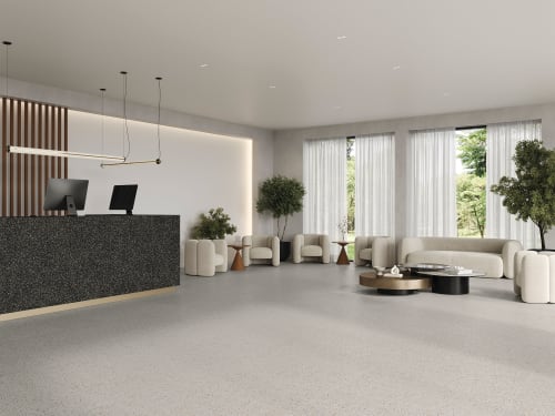 Mystère brings a modern twist to classic terrazzo, blending rich texture, depth, and color with the reliability of American-made porcelain. Durable, refined, and versatile, it’s a timeless collection designed to elevate both indoor and outdoor spaces with effortless sophistication. Available in seven colorways, the structured finish is suitable for residential floors & walls, commercial lobbies, hospitality & retail, and indoor & outdoor applications.