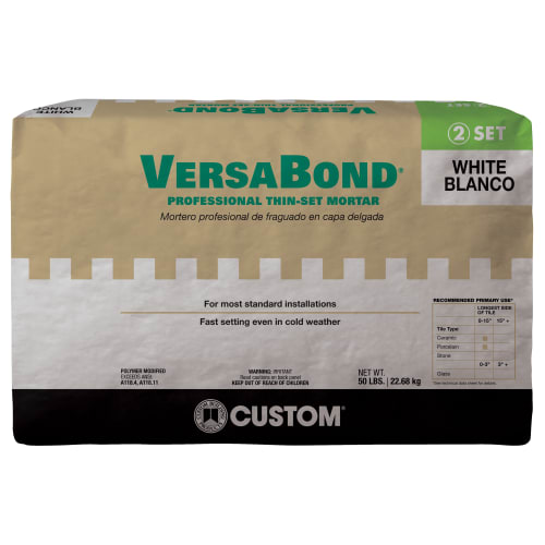 Custom ProLite® offers high bond strength in a lightweight formula with excellent handling characteristics for a wide variety of floor and wall tile installations. Excellent for setting large format tile (LFT), heavy tile or stone, ProLite® will not sag or slip on walls and offers non-slump performance for floor installations. Capable of thin-set or medium bed application up to 3/4" (19 mm) thick on horizontal surfaces after beat-in. Formulated with CustomLite® Technology, ProLite® is 40% lighter than traditional mortars. For interior and exterior installations. A 30 lb. (13.6 kg) bag covers the same area as a 50 lb. (22.68 kg) bag of traditional mortar. Formulated with post-consumer recycled material, it contributes to LEED® certification. ProLite® contains up to 22% recycled content by weight and 48% recycled content by volume. Exceeds ANSI A118.4TE, A118.15TE and A118.11 without the need for additives. Also available in a rapid setting formula (See ProLite® RS).