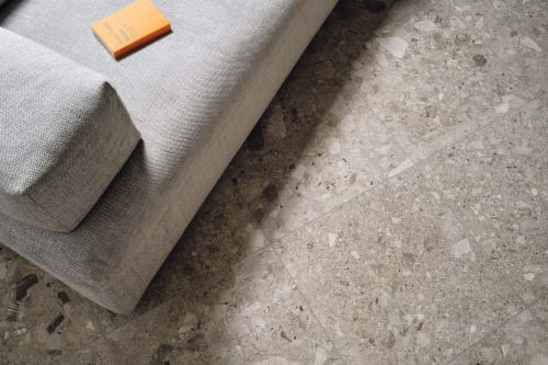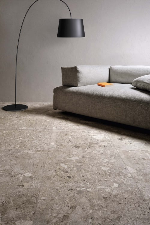 Design your space with the distinctive and striking look of the Frammenta Collection. This collection is a series of matte finished, glazed color body porcelain inspired by the irregular grains of mini and macro-stone patterns. Available in 24in.x24in. Rectified Field Tile, 3in.x24in. Bullnose, 12in.x12in. sheets of Palladiana Mosaic sizes. Each shape is available in white, beige, light grey, dark grey. Ideal for interior and exterior spaces. The Frammenta Collection is made in Italy.