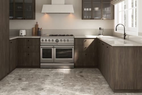 Design your space with the distinctive and striking look of the Frammenta Collection. This collection is a series of matte finished, glazed color body porcelain inspired by the irregular grains of mini and macro-stone patterns. Available in 24in.x24in. Rectified Field Tile, 3in.x24in. Bullnose, 12in.x12in. sheets of Palladiana Mosaic sizes. Each shape is available in white, beige, light grey, dark grey. Ideal for interior and exterior spaces. The Frammenta Collection is made in Italy.