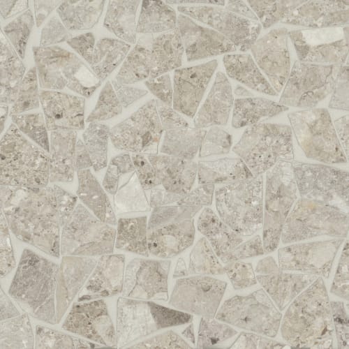 Design your space with the distinctive and striking look of the Frammenta Collection. This collection is a series of matte finished, glazed color body porcelain inspired by the irregular grains of mini and macro-stone patterns. Available in 24in.x24in. Rectified Field Tile, 3in.x24in. Bullnose, 12in.x12in. sheets of Palladiana Mosaic sizes. Each shape is available in white, beige, light grey, dark grey. Ideal for interior and exterior spaces. The Frammenta Collection is made in Italy.