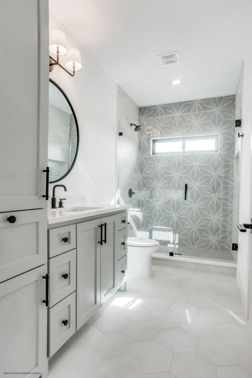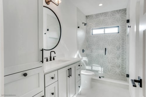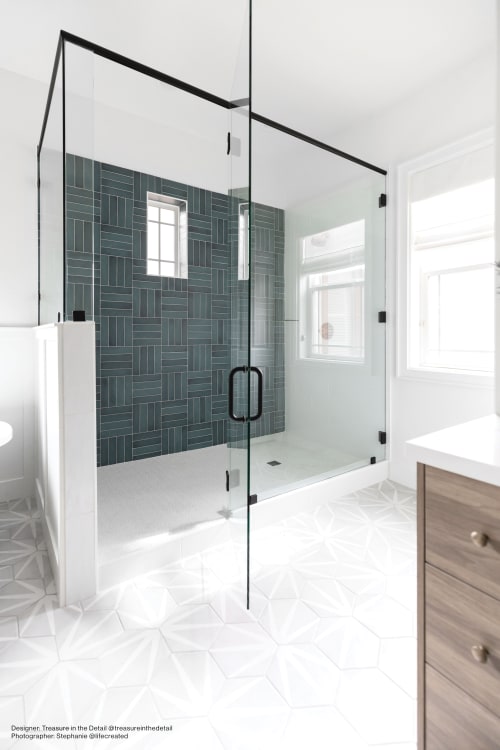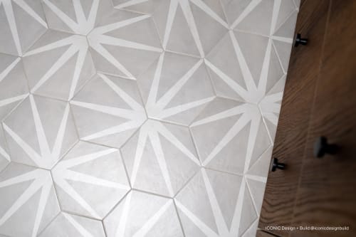 Add geometry to your floors and walls with Allora, an Italian-made matte porcelain tile that comes in three shapes: Rectangle (3”x24”), Rhombus (7.5"x12.75") and Hexagon (8.5”x10”). The neutral colors of White, Gray and Black blend well with any room style. The hexagon shapes also come in three deco options in Fiore (floral pattern), Stella (star pattern) and Telaio (hexagon pattern). Create a solid-colored look, a complete patterned design, or combine the solids and decos for your own look.