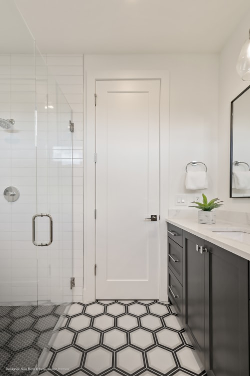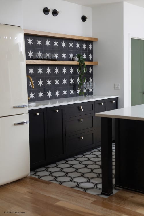 Add geometry to your floors and walls with Allora, an Italian-made matte porcelain tile that comes in three shapes: Rectangle (3”x24”), Rhombus (7.5"x12.75") and Hexagon (8.5”x10”). The neutral colors of White, Gray and Black blend well with any room style. The hexagon shapes also come in three deco options in Fiore (floral pattern), Stella (star pattern) and Telaio (hexagon pattern). Create a solid-colored look, a complete patterned design, or combine the solids and decos for your own look.