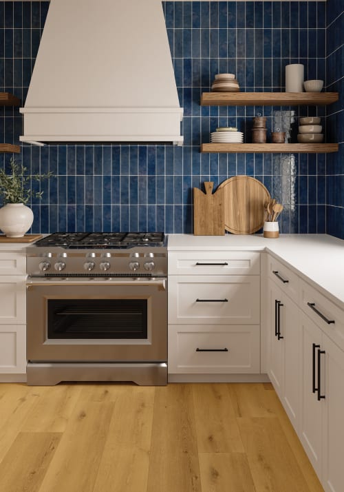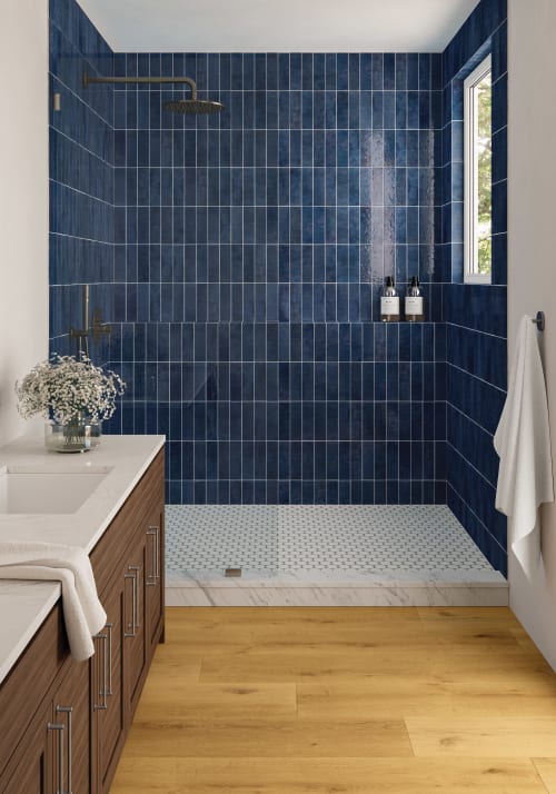 The Cloé Collection is glazed ceramic wall tile characterized by its brilliant colors, smooth gloss finish and interesting variations in hues and tones. Its eight colors: White, Creme, Baby Blue, Grey, Pink, Green, Blue and Black, can be used in a wide range of combinations. Cloé's two sizes, 5x5and 2.5x 8, allow for modern and classic looks. For a pop of pattern, we've included a 5x5 black and white Loire deco. Trim out your projects with the ½x8 Jolly Miter Edge Trim in a gloss finish.
