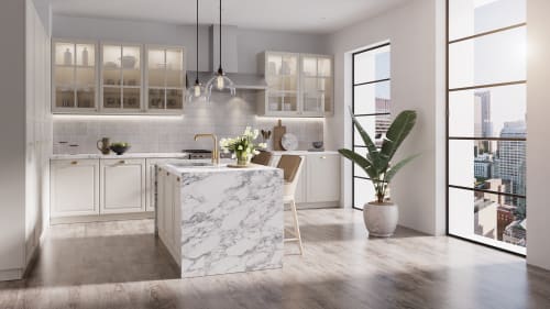 The Cloé Collection is glazed ceramic wall tile characterized by its brilliant colors, smooth gloss finish and interesting variations in hues and tones. Its eight colors: White, Creme, Baby Blue, Grey, Pink, Green, Blue and Black, can be used in a wide range of combinations. Cloé's two sizes, 5x5and 2.5x 8, allow for modern and classic looks. For a pop of pattern, we've included a 5x5 black and white Loire deco. Trim out your projects with the ½x8 Jolly Miter Edge Trim in a gloss finish.