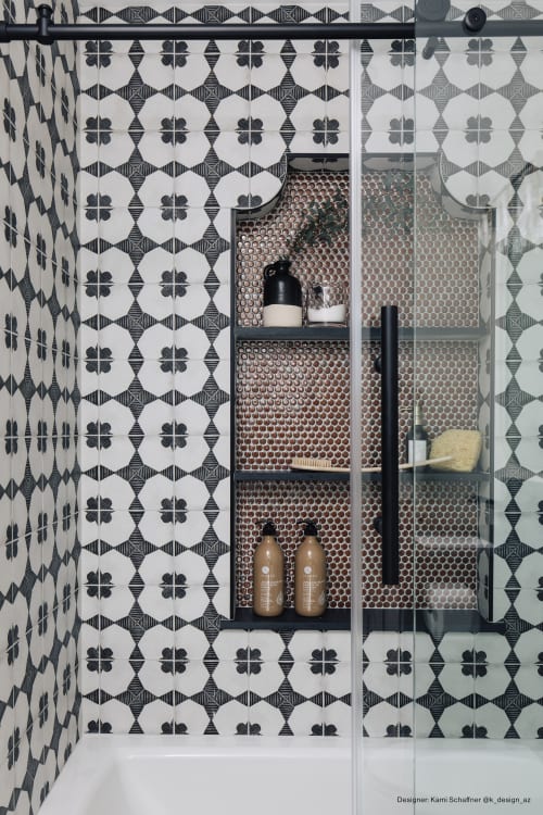 Designed to replicate hand-painted cement tiles, the Enchante Collection delivers the aesthetic of encaustic cement tile in a low maintenance, durable color-body porcelain. Select one of our 8”x8” tiles in repeating three patterns: Charm, Splendid and Moderno.