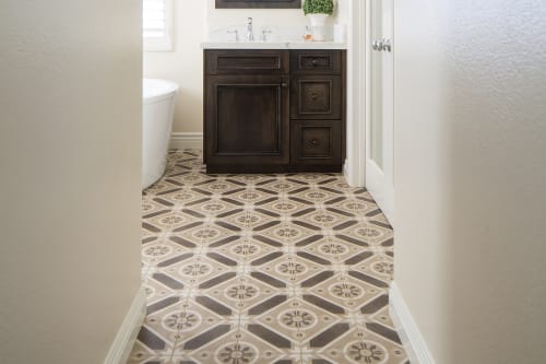 Designed to replicate hand-painted cement tiles, the Enchante Collection delivers the aesthetic of encaustic cement tile in a low maintenance, durable color-body porcelain. Select one of our 8”x8” tiles in repeating three patterns: Charm, Splendid and Moderno.