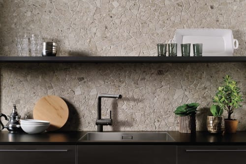 Design your space with the distinctive and striking look of the Frammenta Collection. This collection is a series of matte finished, glazed color body porcelain inspired by the irregular grains of mini and macro-stone patterns. Available in 24in.x24in. Rectified Field Tile, 3in.x24in. Bullnose, 12in.x12in. sheets of Palladiana Mosaic sizes. Each shape is available in white, beige, light grey, dark grey. Ideal for interior and exterior spaces. The Frammenta Collection is made in Italy.
