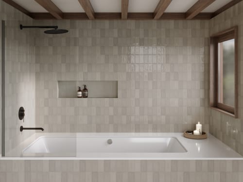 The ocean is in constant motion, ebbing and flowing as its surface gently undulates in all directions. This soothing movement of water is the essence of our Marin Collection of glazed ceramic tile. With its gentle, uneven body and high-gloss finish, light dances across the tile like the sun on the ocean, creating a serene, shimmering look. Available in three sizes and nine placid colors, Marin evokes all the elements of the coast, from sea to sand to salt air.