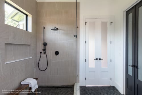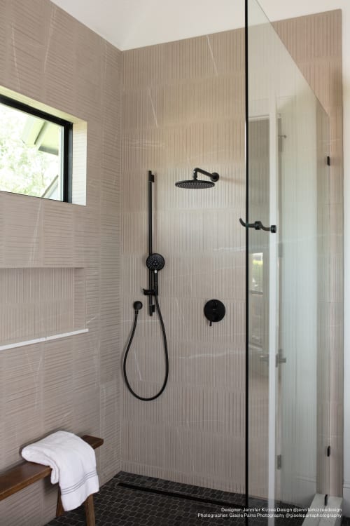 Create a bold and dramatic space with the Nomade collection - a unique selection of glazed porcelain tile with the look of natural stone. Glazed porcelain is smooth, stain-resistant, water-resistant, damage-resistant, and requires little maintenance. It is the perfect selection of tile for indoor and outdoor use. The tiles in this collection are available in 28” x 48” Field Tile and Deco Tile, 3” x 24” Bullnose trim, and 1” x 4” Straight Set Mosaic that comes in 12” x 12” sheets. Each size is offered in neutral Bone, Argent, and Noir shades with a matte finish. The Nomade Collection is made in Spain.