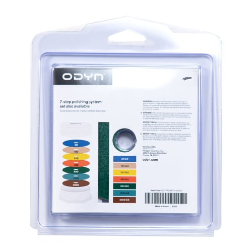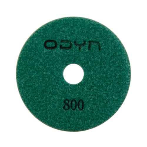 Add a factory finish to your next project using the 4” x 5/8” ODYN Wet Stone Polishing Pad - 800 Grit. This polishing pad features a rough textured surface with a raised honeycomb pattern great for natural stone materials. For maximum efficacy, use alongside the ODYN Premium Wet Stone Polishing Pad Set. 800 grit. Color coded for easy grit identification. Easy to use. Velcro back for longevity. Shape: Honeycomb. Offers a factory finish on natural stone materials. Ideal for use with the ODYN Premium Wet Stone Polishing Pad Set. Warning: Improper use may cause property damage or serious injuries. Comply with ANSI 87.1 and OSHA regulation. Always use a guard, personal protective equipment and proper mounting procedures. Dry polishing will generate dust and nasal protection is required. Warning: This product can expose you to chemicals including cobalt, metal powder, and nickel (metallic), which are known to the State of California to cause cancer. For more information go to www.P65Warnings.ca.gov.