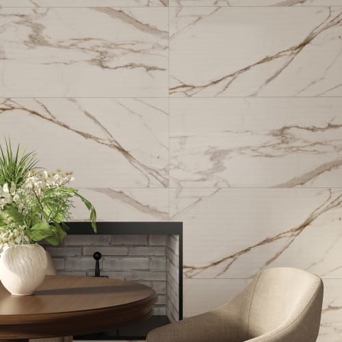 Opus 24" x 48" Chiseled Matte Porcelain Deco Wall Tile in Calacatta