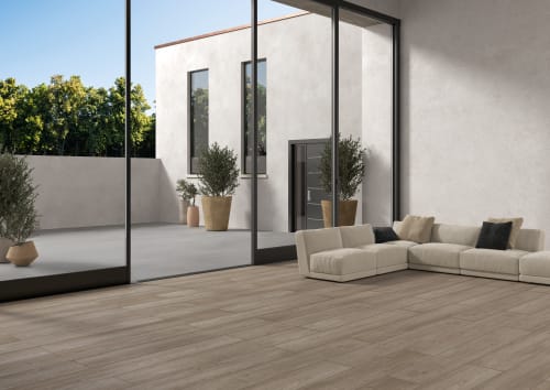 Wide plank, wood look flooring has met its match. Indistinguishable from real wood, the Planx Collection is constructed of glazed color body porcelain with a matte wood grain texture and unique pattern on every plank. Big on style and sophistication, Planx comes in impressive, 12”x72” planks and a range of organic tones that bring the outside indoors. The tile’s deep color body withstands scratches and scuffs, making it ideal for areas like kitchens and other high traffic living spaces.