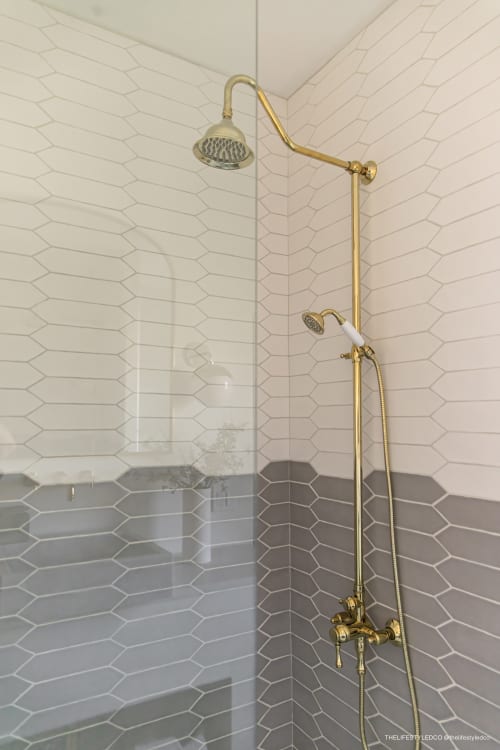 Majestic and regal, Reine, a Spanish-made glazed ceramic wall tile in a picket shape, adds a fresh take on the subway tile. The picket is a unique and eye-catching shape much like the points in a queen’s crown. Reine is a 3”x12” tile offered in a matte finish in eight earthy colors: White, Ivory, Grey, Golden, Castle Moss Green, Gentleman’s Grey, Dark Teal and Black. White is also offered a glossy finish. Stack it vertically or horizontally for a geometric tile pattern or consider a braided arrangement for an organic-inspired flow. This collection is complete with a matte ½”x8” Jolly - Miter Edge Trim, with a glossy version offered in White.
