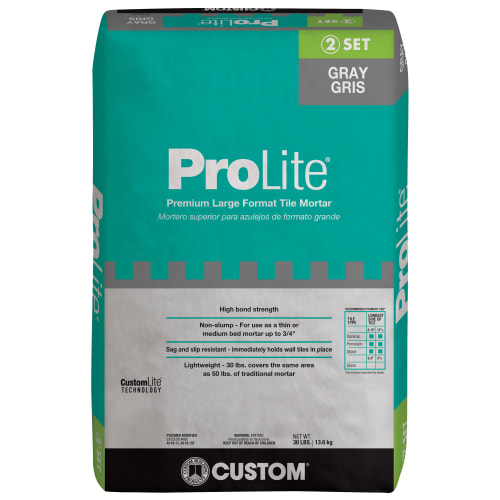 A polymer modified large and heavy tile mortar specifically formulated to provide a one-step installation for large format ceramic tile, porcelain tile, marble and stone on floors.