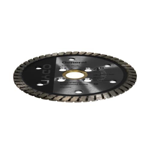 Engineered to be the best, the ODYN 4 in. General Turbo Blade delivers fast, smooth cuts consistently. This blade features a 4-hole flush cut and a unique, proprietary metal matrix ideal for cutting natural or engineered stone. The ODYN 4 in. General Turbo Blade is for dry / wet use with angle grinders. It has a Max RPM of 15,000 and ⅞”-20mm-⅝” arbor.